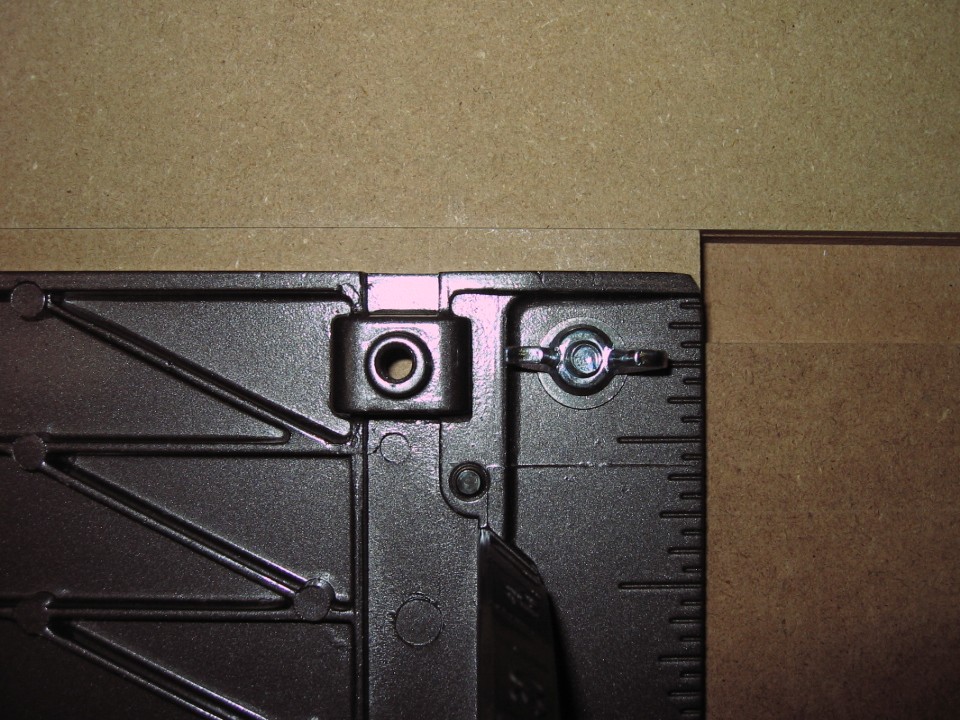 Cut the plate into the 1/4″ thick MDF sheet and duplicate the 3 holes (1/4″ diameter) of your base. The holes should be flared so that the countersunk screws do not protrude.
